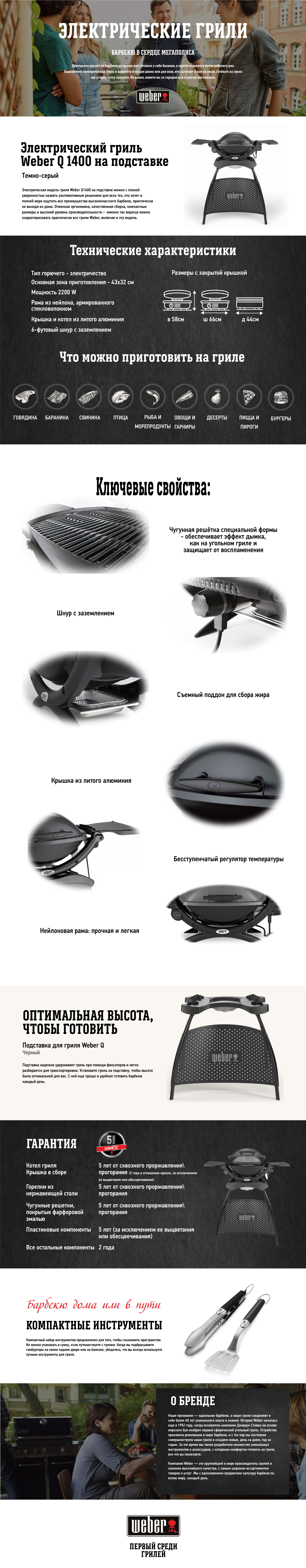 Основные преимущества, которые делают Weber Q 1400 с подставкой незаменимым: