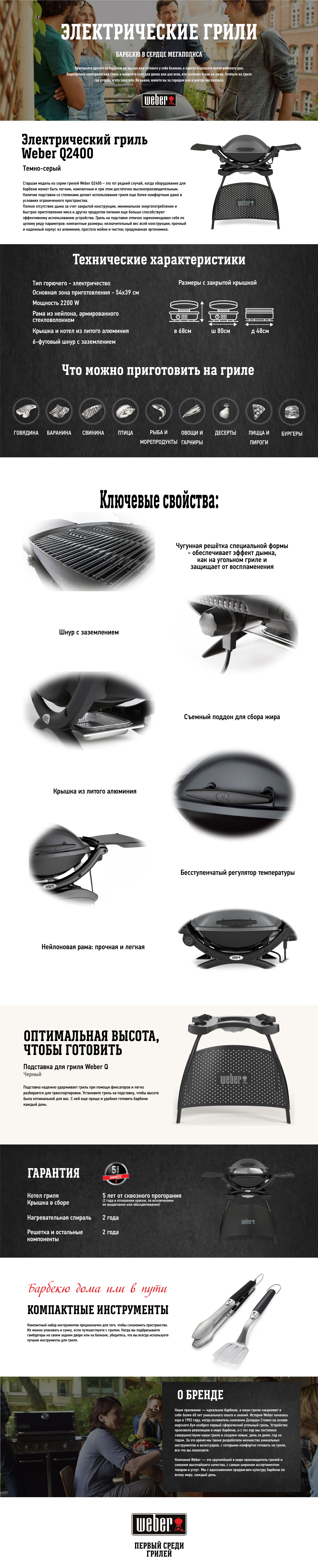 Основные преимущества, которые делают Weber Q 2400 с подставкой непревзойденным: