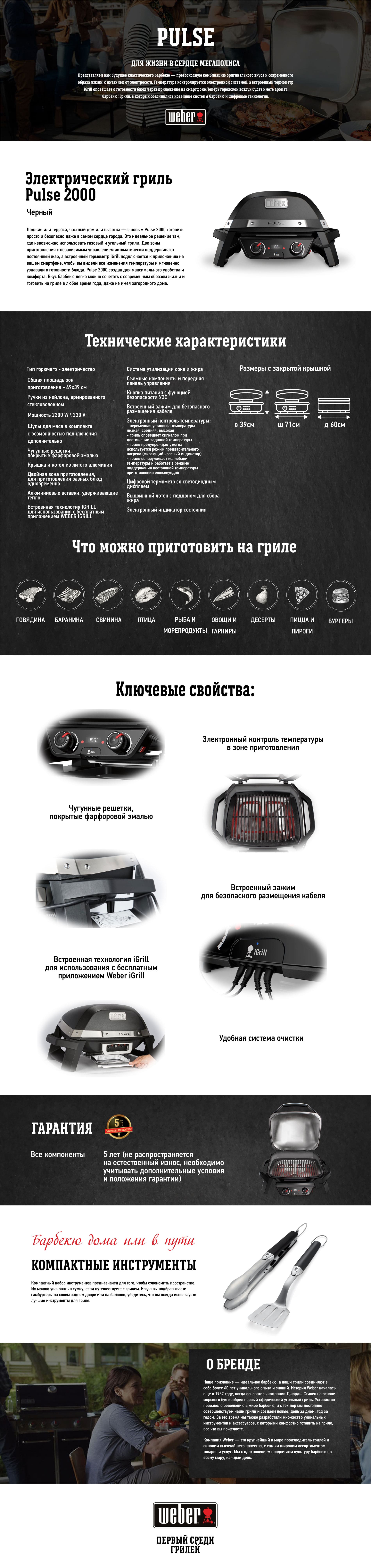 | Продукт | Электрический гриль Weber Pulse 2000 |