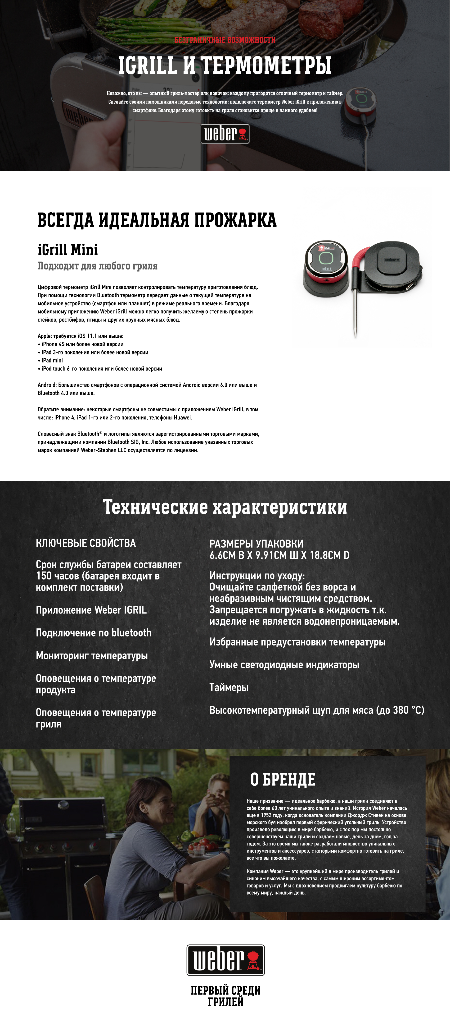 | Совместимость | Мобильные устройства (смартфон, планшет), любой гриль Weber |