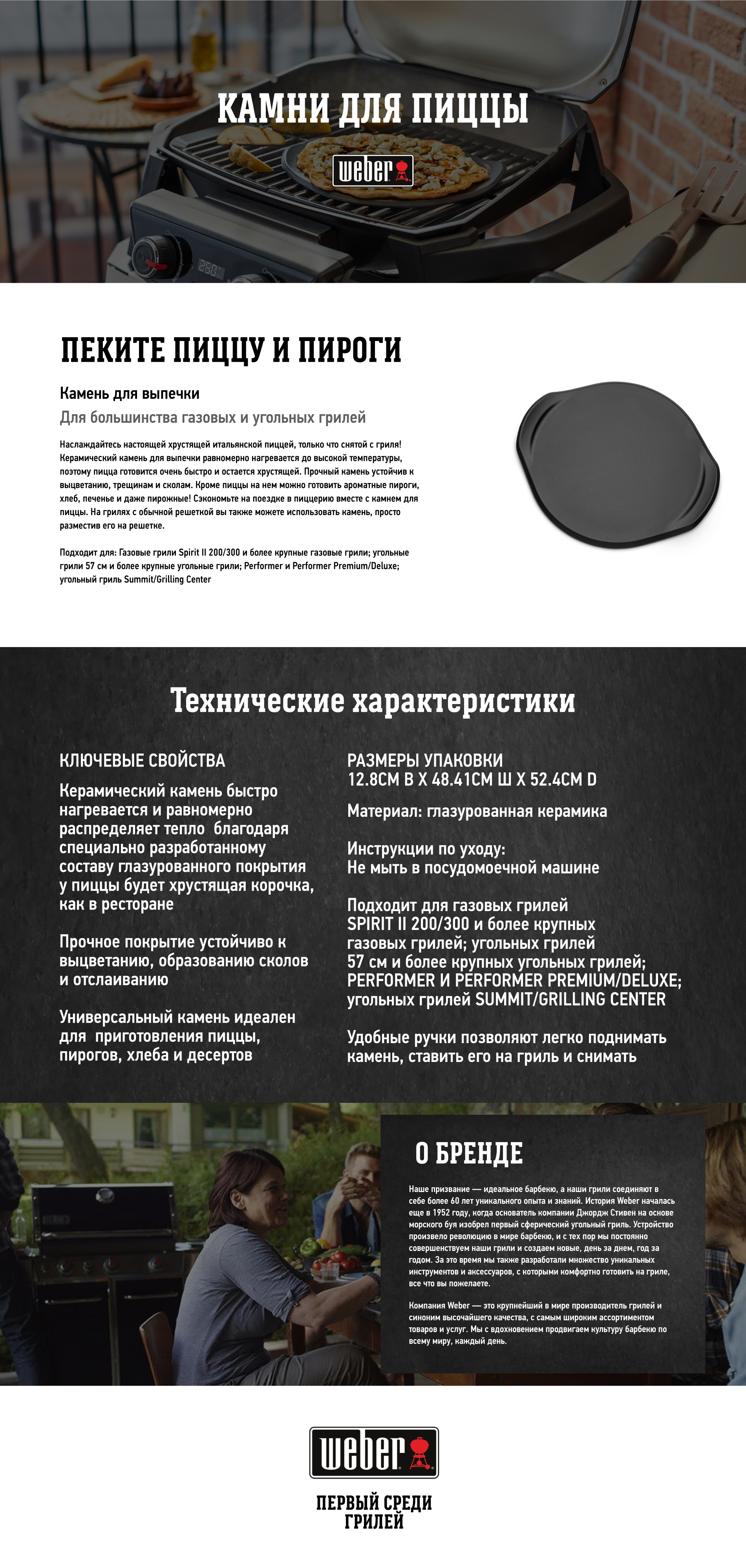 | Совместимость | Электрические грили Pulse 1000/2000, серии Q; газовые грили серии Q и более; все угольные грили Weber |